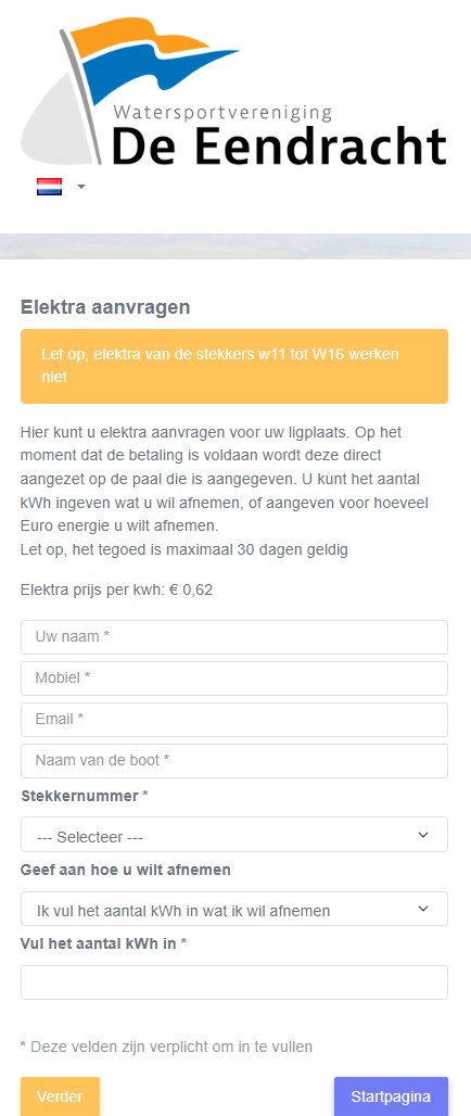 De passant kan ingeven de hoeveelheid Kwh of het bedrag wat hij aan kwh wil afnemen