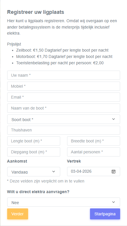 - De passant kan een wens locatie ingeven. De havenmeester krijgt hiervan melding Fastdata kijkt of dit kan en plaatst de passant kan dit niet dan kiest havenmeester voor locatie.